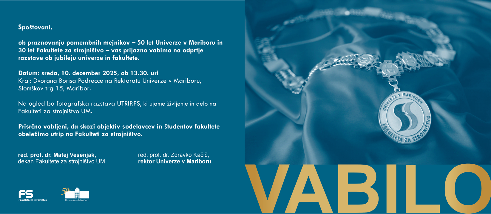ob praznovanju pomembnih mejnikov – 50 let Univerze v Mariboru in 30 let Fakultete za strojništvo – vas prijazno vabimo na odprtje razstave ob jubileju univerze in fakultete.