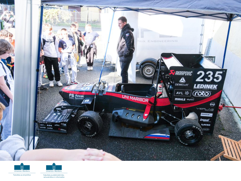 Že več kot četrt stoletja študentje projekta Formula Student oblikujejo in izdelujejo dirkalnike, s katerimi se merijo z najboljšimi univerzami po Evropi. Na festivalu ste si lahko ogledali njihov zadnji dirkalnik, ki je bil izdelan še s hrupnim motorjem, ki smo ga seveda že tradicionalno tudi zagnali na licu mesta! Dirkalnik ste si seveda ogledali v živo ter spoznali del ekipe, ki stoji za tem izjemnim dosežkom. Projekt je delo študentov Fakultete za strojništvo in Fakultete za elektrotehniko, računalništvo in informatiko - združenih v ekipo UNI Maribor GPE Formula Student. Ekipa je v tem letu sodelovala na tekmovanjih po Evropi z novim električnim dirkalnikom, njihovi dosežki pa so prav neverjetni!