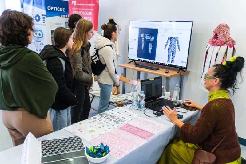 Za vse, ki jih zanima svet mode, smo predstavili proces nastanka oblačila – od prvih skic do računalniškega oblikovanja in izdelave krojnih delov, prikaz končnega rezultata oblačil na krojaških lutkah. Obiskovalci so lahko spremljali, kako kreativnost dobi obliko v tekstilnih vzorcih in končnih izdelkih.
