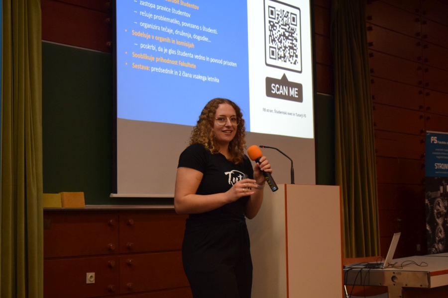 Zbrane je nagovoril dekan fakultete red. prof. dr. Matej Vesenjak, nato pa so sledile predstavitve študijskih programov, delovanja referata, študentskih aktivnosti, Tutorstva, Študentskega sveta FS ter Aeronavtskega društva Univerze v Mariboru (ADUM).