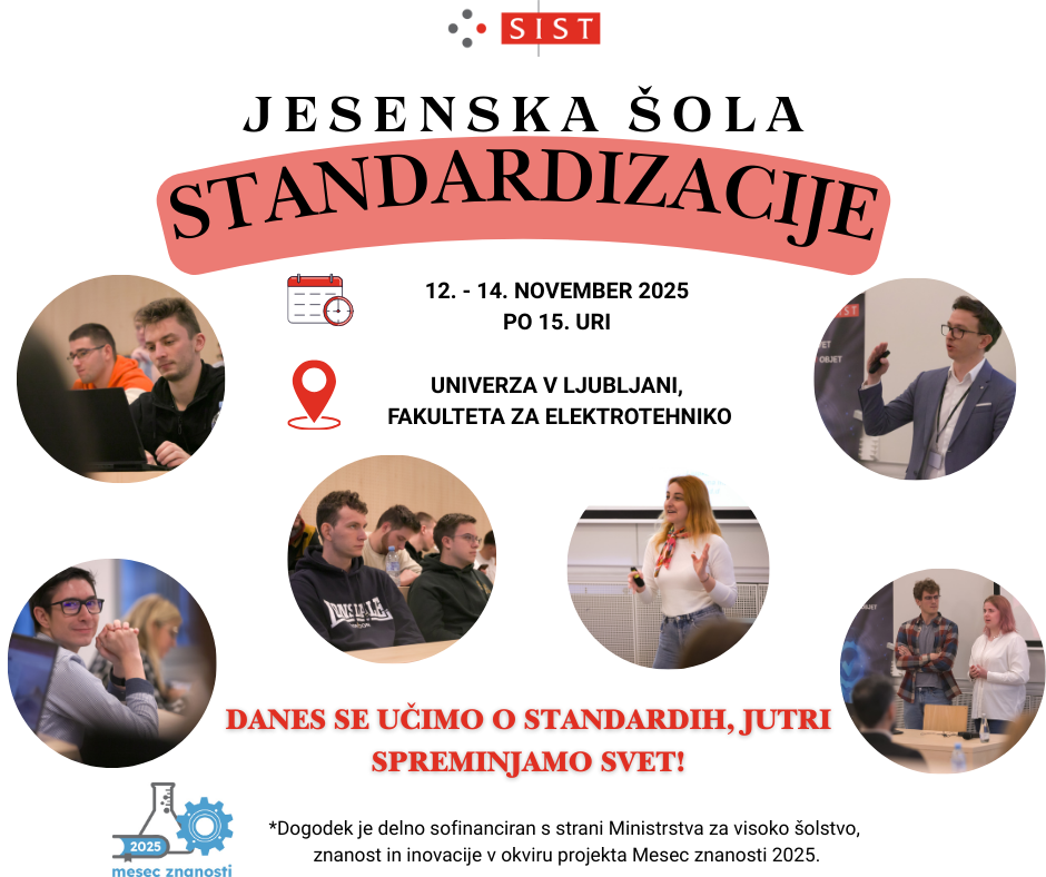 Slovenski inštitut za standardizacijo (SIST) bo letos ponovno organiziral Jesensko šolo standardizacije, ki bo potekala 12., 13. in 14. novembra 2025 na Fakulteti za elektrotehniko v Ljubljani.