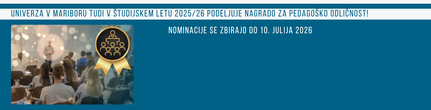 Univerza v Mariboru tudi v študijskem letu 2025/26 podeljuje nagrado za pedagoško odličnost!